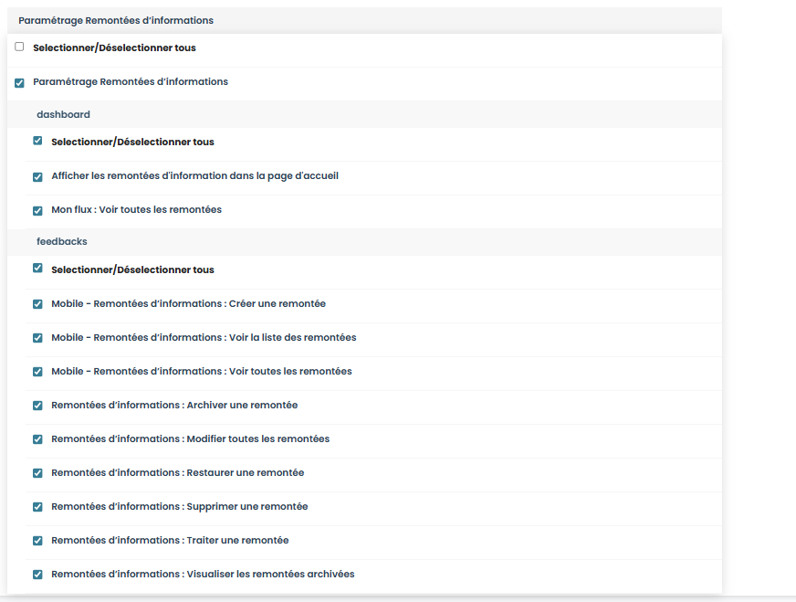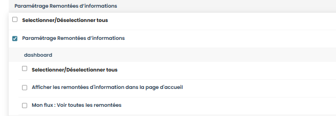 Ensuite dans "Paramétrage Remontées d’informations", cochez les permissions désirées :